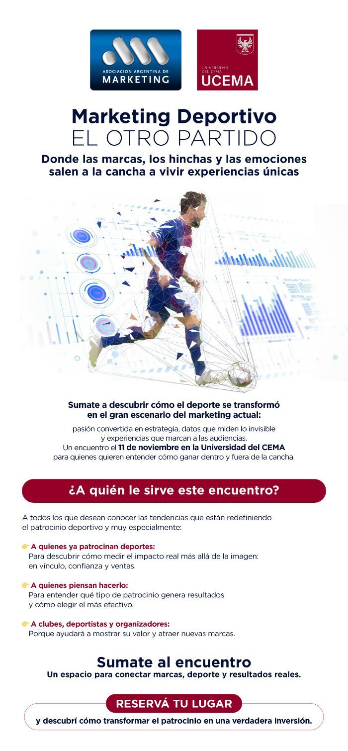Para conocer más —y escuchar la visión de quienes trabajamos para que el patrocinio se vea, le sirva al deporte y a las empresas te invitamos al encuentro organizado por UCEMA y la Asociación Argentina de Marketing.